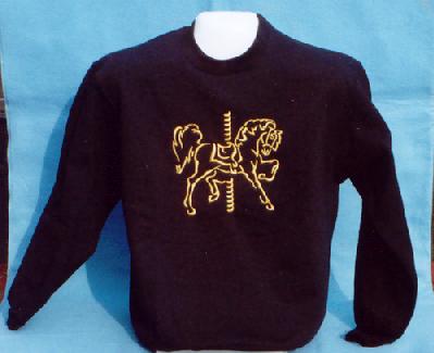 Gold metalic thread on a black sweatshirt. Rich looking. You pick the size s. m. l. x-l. Larger sizes available at a slightly higher price.