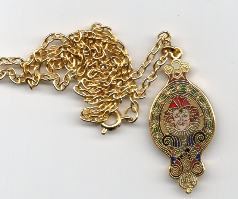 A Carousel Classic enameled Dentzel Jester Shield necklace. Approx 1 x 1 /4"