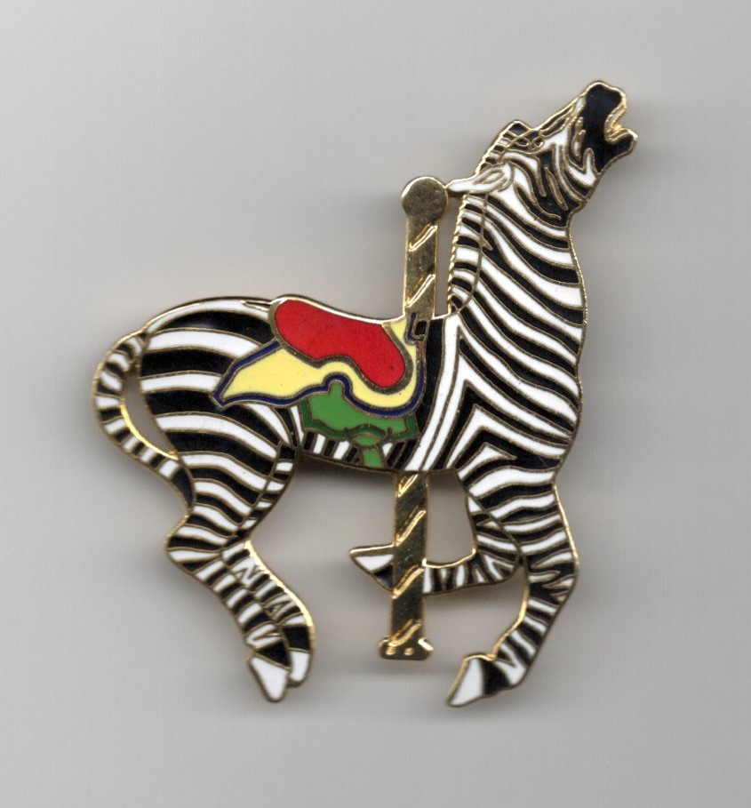 A Carousel Classic PTC Zebra lapel pin Approx 2 x 2 1/4"