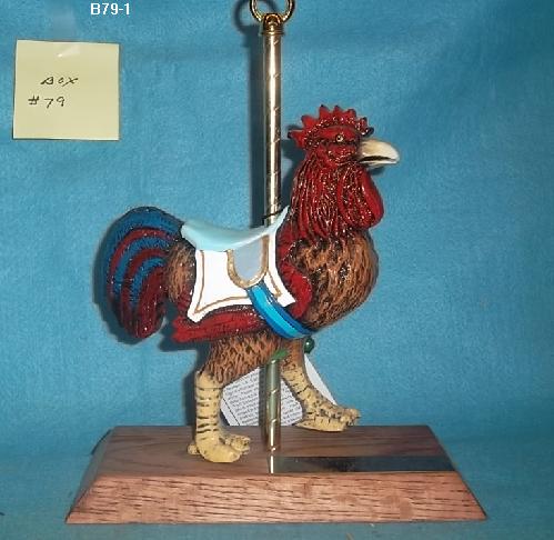 A PJ Dentzel Rooster. Plaque is marked "Chicken" 11 x 9 x 4 1/2"