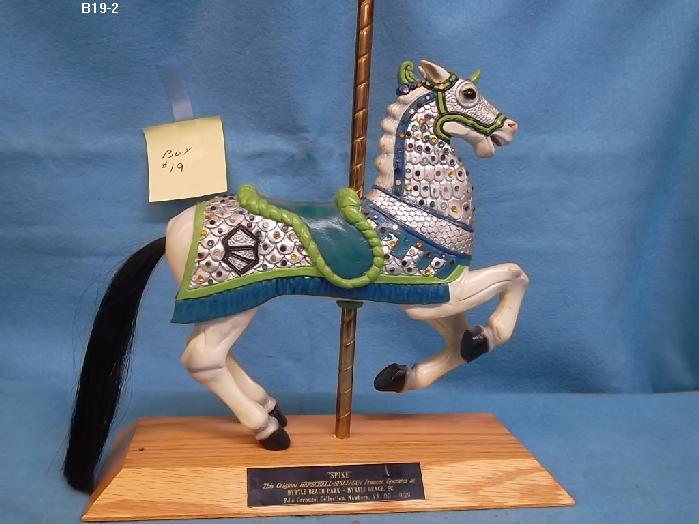 A Herschell Spillman Armored horse with a hair tail. From Myrtle Beach, S. C. Approx 13 x 11 x 5"